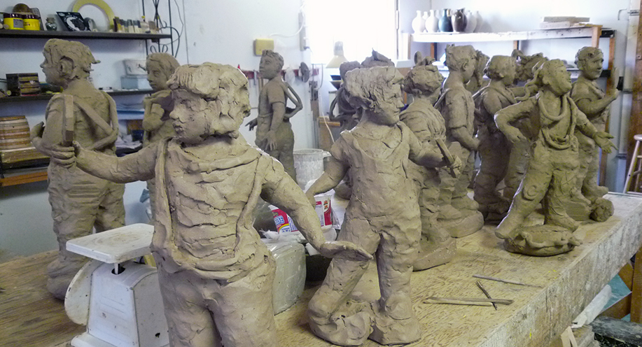 Each is sculpted using the traditional ceramic technique of coil building to create a figure of a contemporary art performance artist.